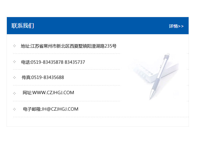 地址:常州市新北區友邦商務大廈1幢16、17層  電話:0519-85101652  傳真:0519-85112595  郵編:213022  網址:www.cz-jiayue_cn.juanjuandg.com  郵箱:xiajifengaa@163.com